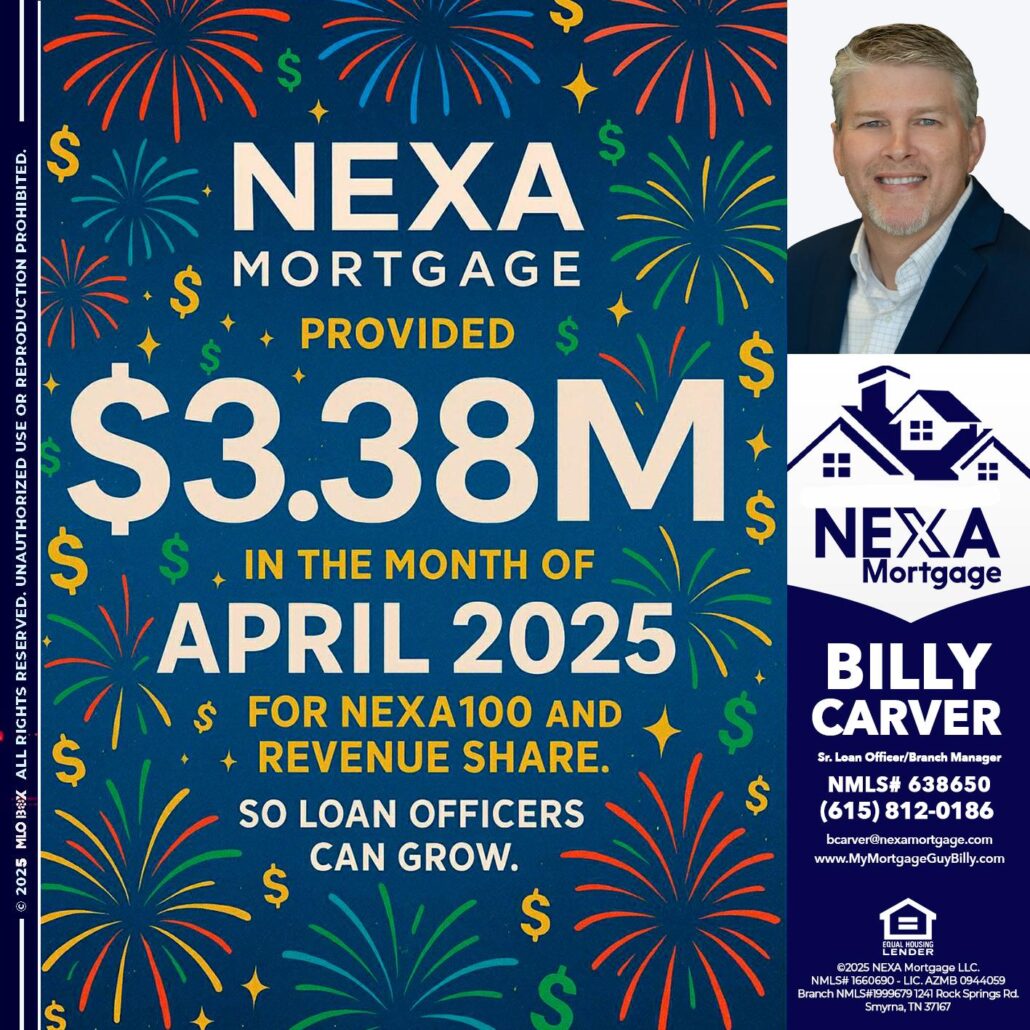 Hi, my name is Billy Carver. I’m a Loan Officer with NEXA Mortgage LLC., offering personalized mortgage solutions, fast customized quotes, great rates and service with integrity.