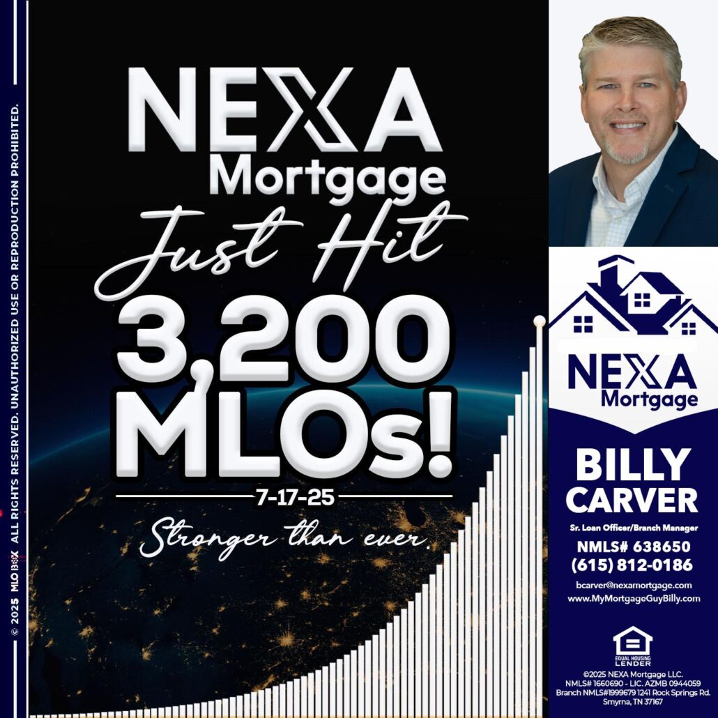 Hi, my name is Billy Carver. I’m a Loan Officer with NEXA Mortgage LLC., offering personalized mortgage solutions, fast customized quotes, great rates and service with integrity.