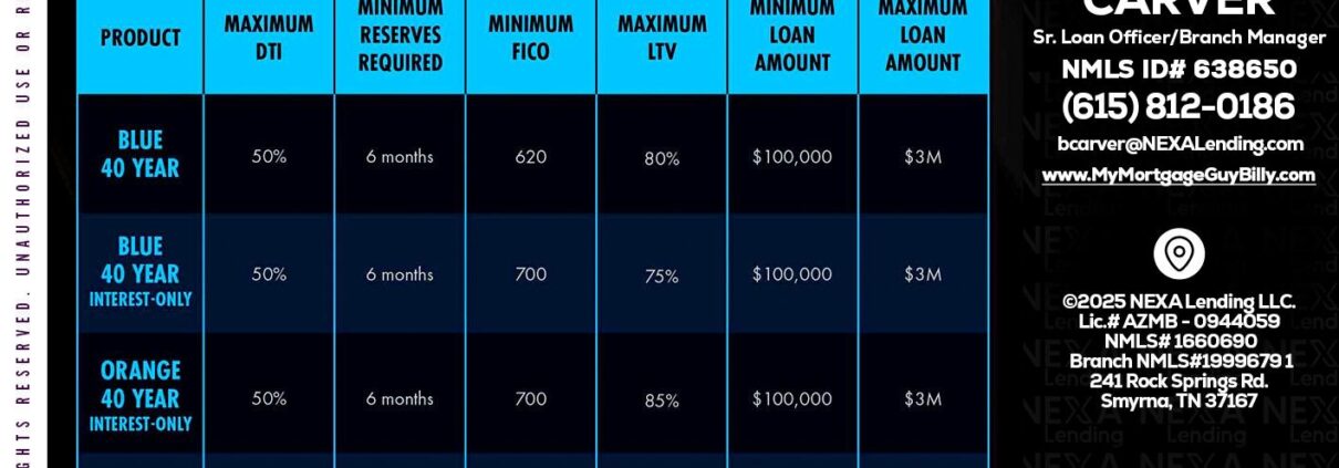 Hi, my name is Billy Carver. I’m a Loan Officer with NEXA Lending LLC., offering personalized mortgage solutions, fast customized quotes, great rates and service with integrity.