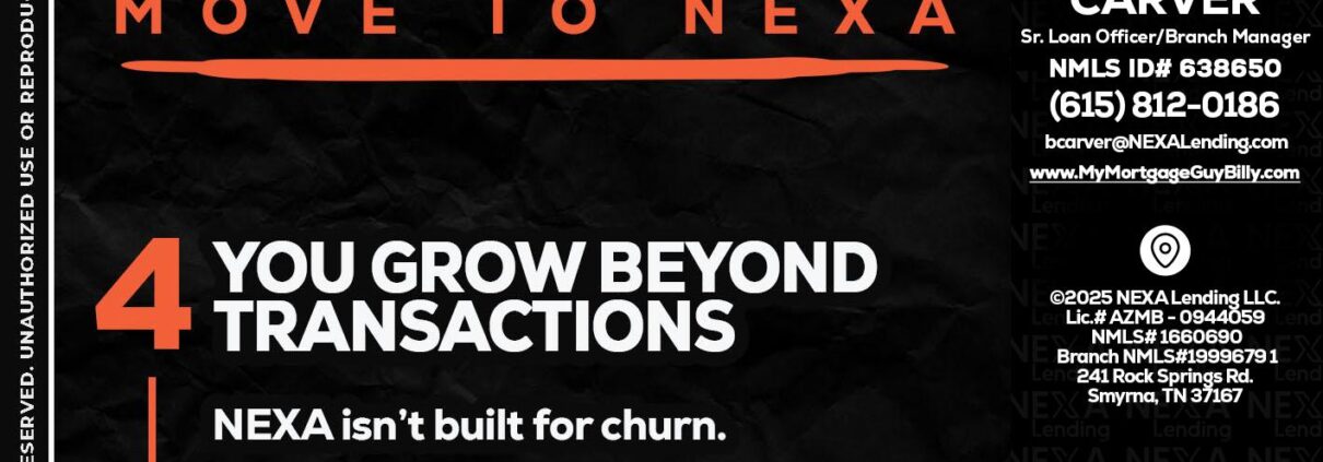 Hi, my name is Billy Carver. I’m a Loan Officer with NEXA Lending LLC., offering personalized mortgage solutions, fast customized quotes, great rates and service with integrity.