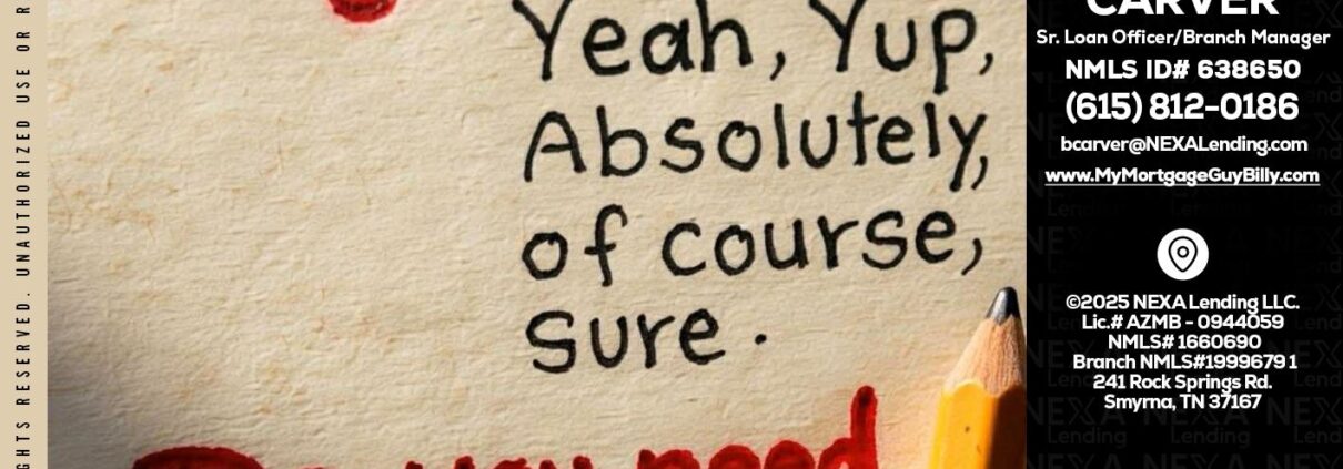 Hi, my name is Billy Carver. I’m a Loan Officer with NEXA Lending LLC., offering personalized mortgage solutions, fast customized quotes, great rates and service with integrity.