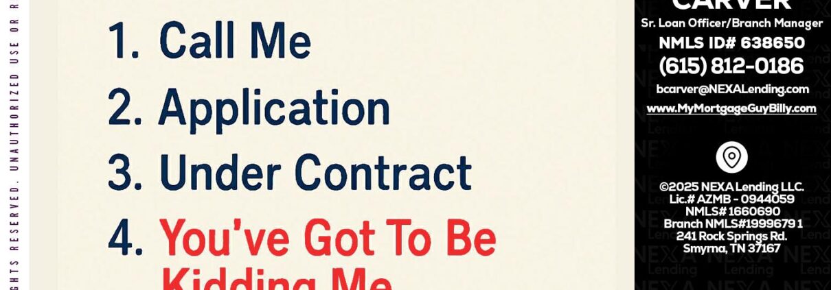 Hi, my name is Billy Carver. I’m a Loan Officer with NEXA Lending LLC., offering personalized mortgage solutions, fast customized quotes, great rates and service with integrity.