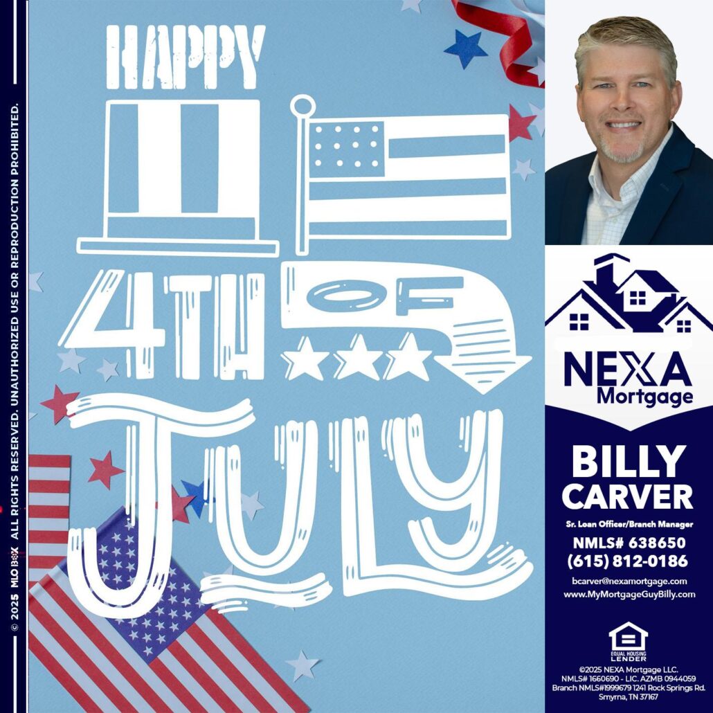 Hi, my name is Billy Carver. I’m a Loan Officer with NEXA Mortgage LLC., offering personalized mortgage solutions, fast customized quotes, great rates and service with integrity.