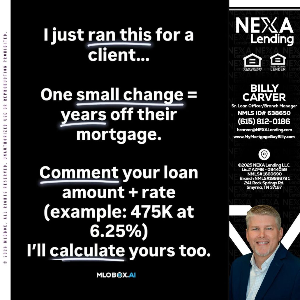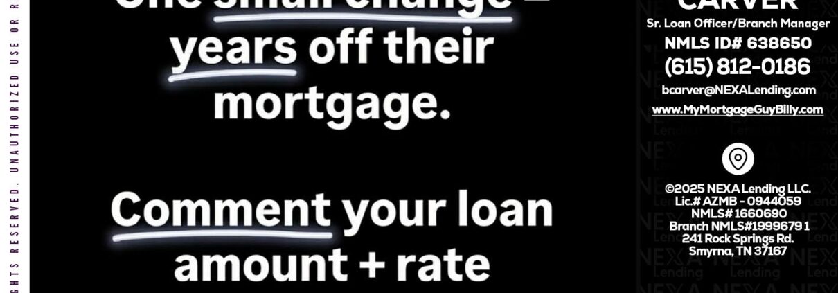 Hi, my name is Billy Carver. I’m a Loan Officer with NEXA Lending LLC., offering personalized mortgage solutions, fast customized quotes, great rates and service with integrity.