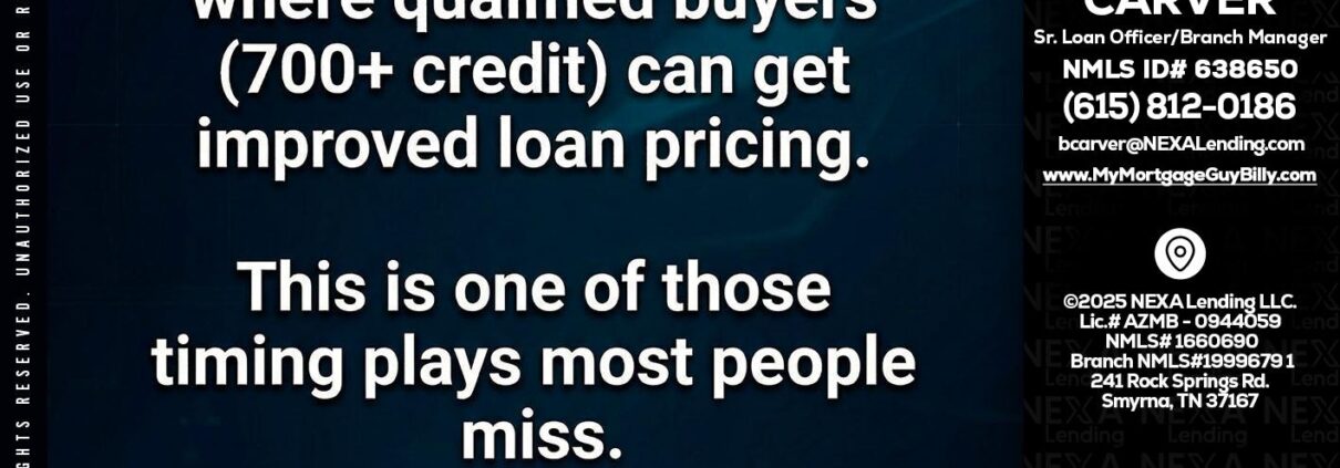 Hi, my name is Billy Carver. I’m a Loan Officer with NEXA Lending LLC., offering personalized mortgage solutions, fast customized quotes, great rates and service with integrity.
