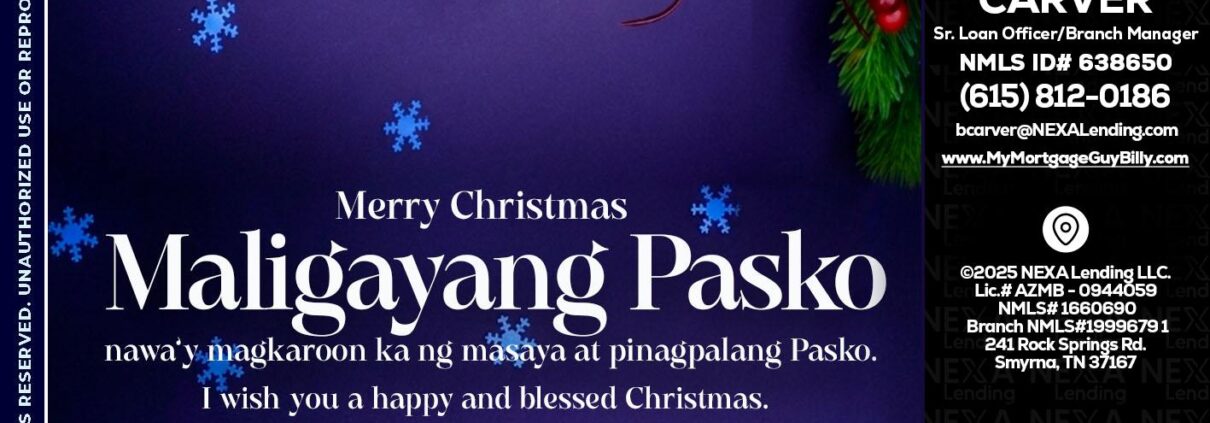 Hi, my name is Billy Carver. I’m a Loan Officer with NEXA Lending LLC., offering personalized mortgage solutions, fast customized quotes, great rates and service with integrity.