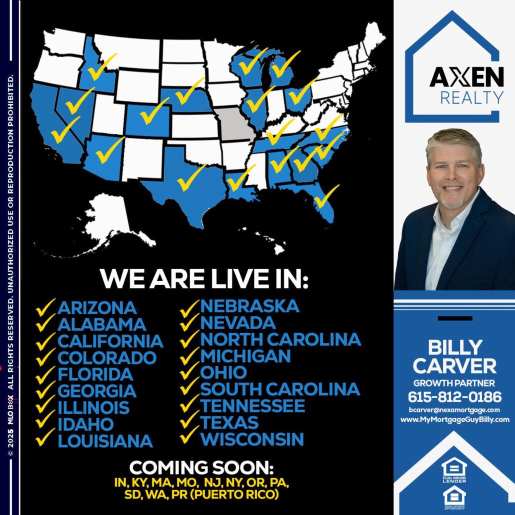 Hi, my name is Billy Carver. I’m a Loan Officer with NEXA Mortgage LLC., offering personalized mortgage solutions, fast customized quotes, great rates and service with integrity.