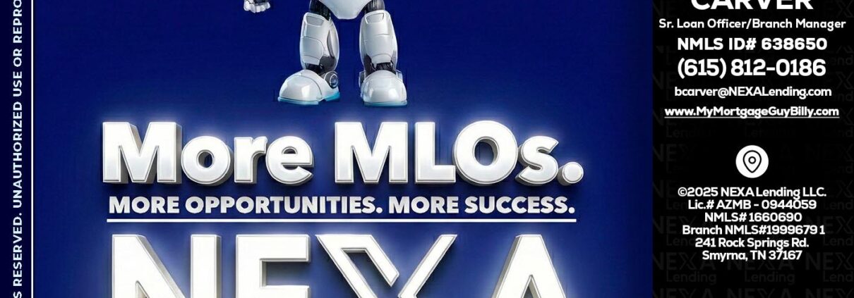 Hi, my name is Billy Carver. I’m a Loan Officer with NEXA Lending LLC., offering personalized mortgage solutions, fast customized quotes, great rates and service with integrity.