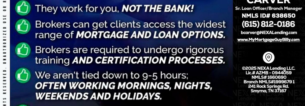 Hi, my name is Billy Carver. I’m a Loan Officer with NEXA Lending LLC., offering personalized mortgage solutions, fast customized quotes, great rates and service with integrity.