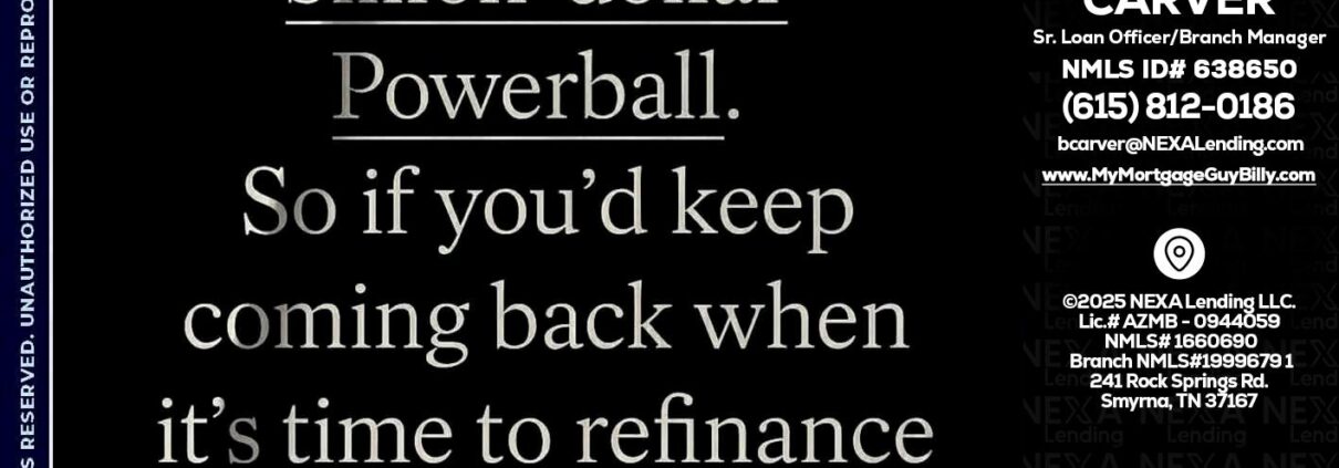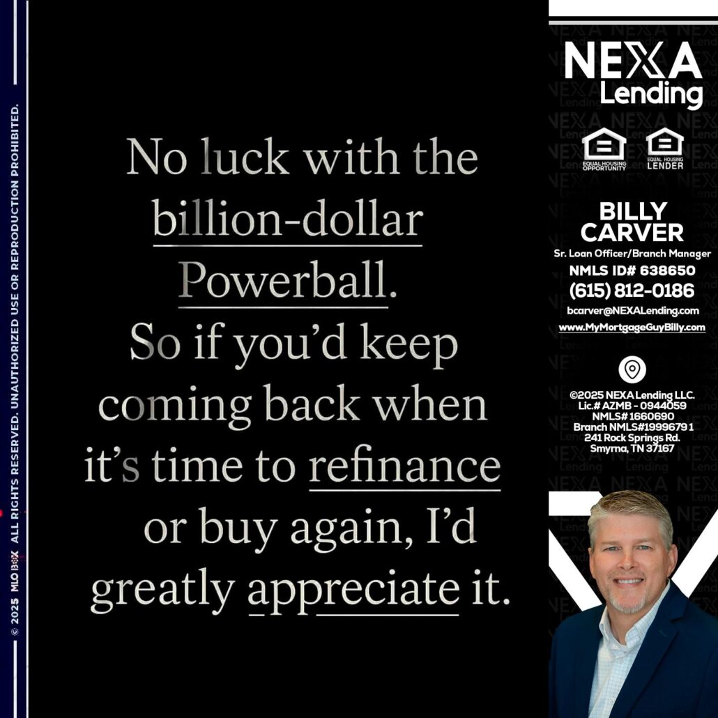 Hi, my name is Billy Carver. I’m a Loan Officer with NEXA Lending LLC., offering personalized mortgage solutions, fast customized quotes, great rates and service with integrity.