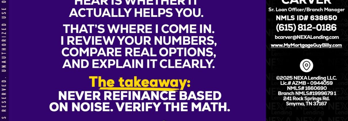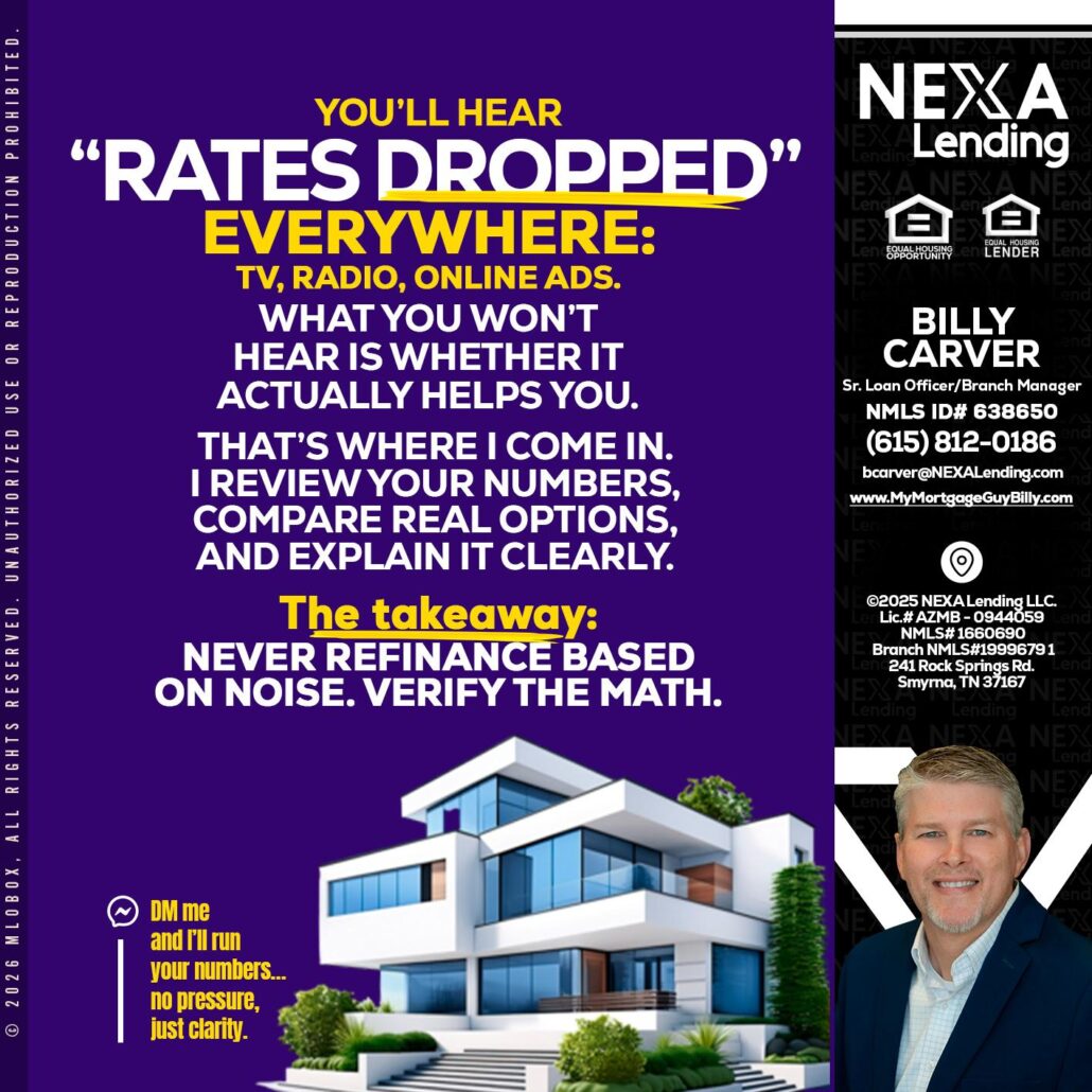 Hi, my name is Billy Carver. I’m a Loan Officer with NEXA Lending LLC., offering personalized mortgage solutions, fast customized quotes, great rates and service with integrity.