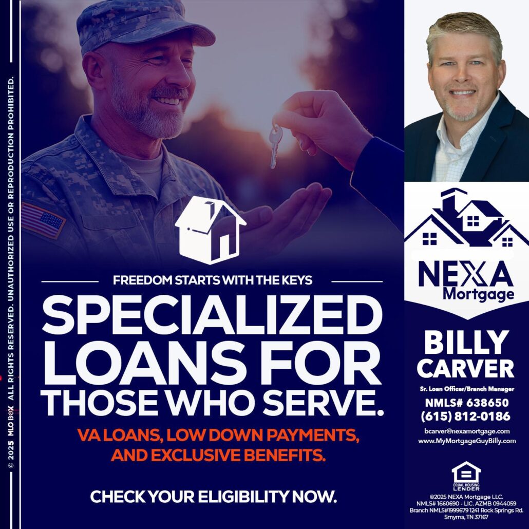 Hi, my name is Billy Carver. I’m a Loan Officer with NEXA Mortgage LLC., offering personalized mortgage solutions, fast customized quotes, great rates and service with integrity.