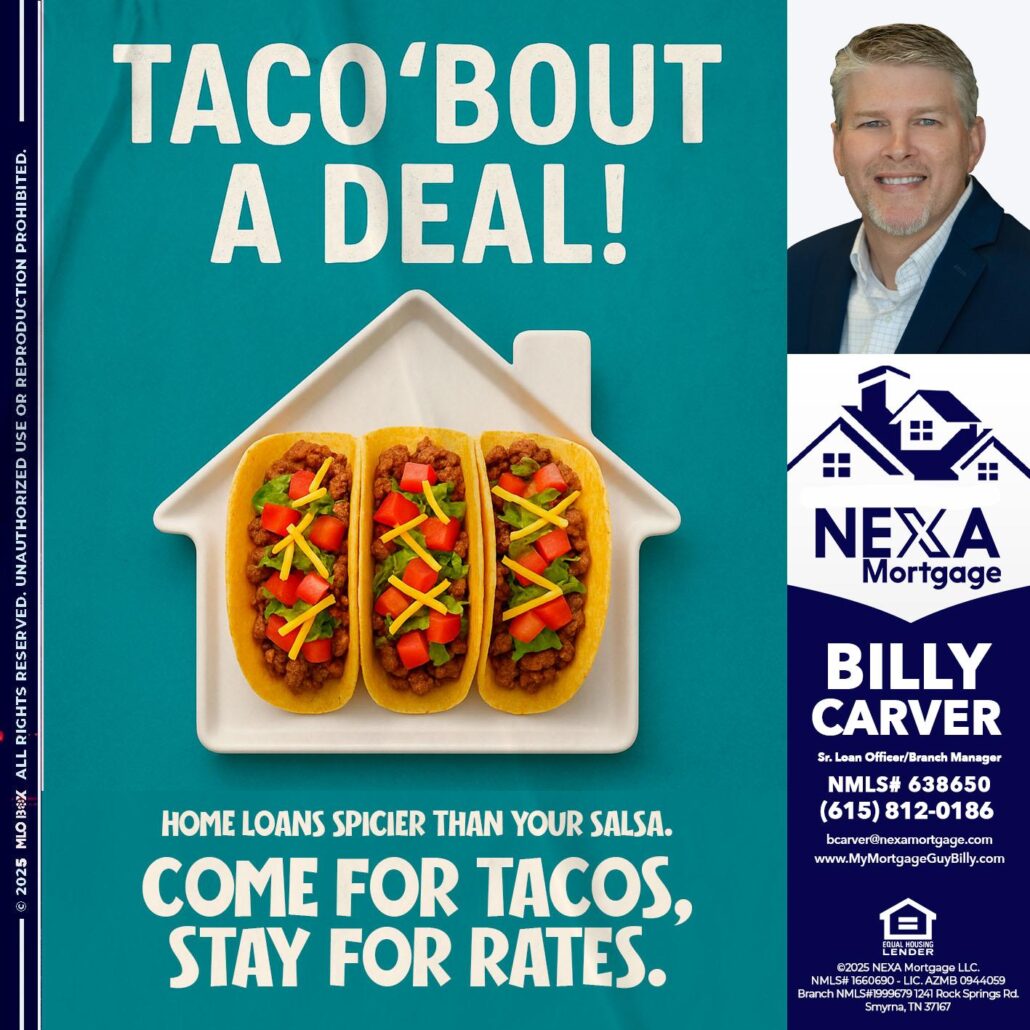 Hi, my name is Billy Carver. I’m a Loan Officer with NEXA Mortgage LLC., offering personalized mortgage solutions, fast customized quotes, great rates and service with integrity.