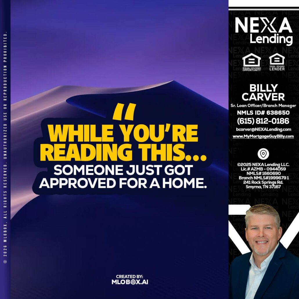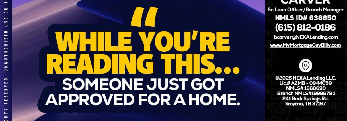 Hi, my name is Billy Carver. I’m a Loan Officer with NEXA Lending LLC., offering personalized mortgage solutions, fast customized quotes, great rates and service with integrity.