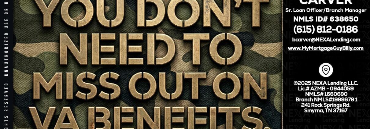 Hi, my name is Billy Carver. I’m a Loan Officer with NEXA Lending LLC., offering personalized mortgage solutions, fast customized quotes, great rates and service with integrity.